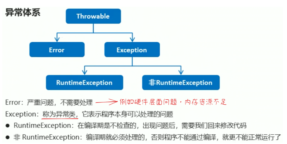 - 如果用户对于异常无能为力(只能 throw、或者打印异常信息 ……),那 api 的设计者应该将这个异常设置为运行时异常 RuntimeException,无需强制用户处理