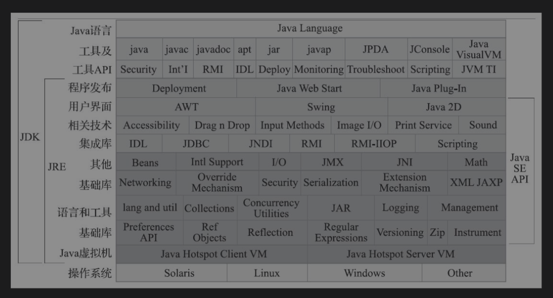 Java Runtime Environment】 JRE 是支持 Java 程序运行的标准环境,包括:
