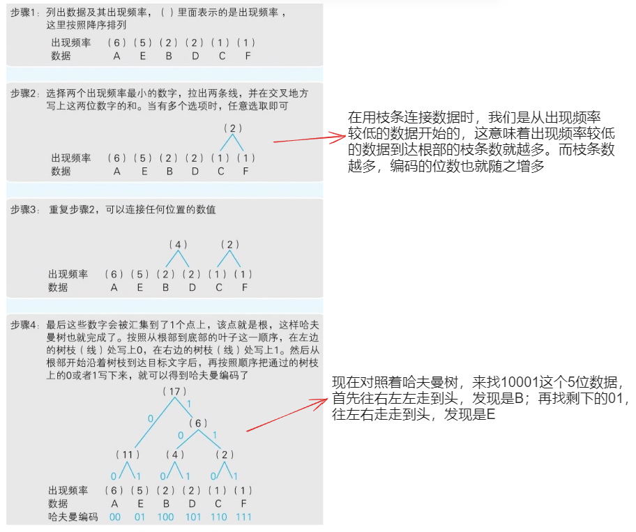 --假设使用哈夫曼算法,A用2位,Q用10位来表示,压缩后的大小就是100次×2位 + 3次×10位 = 230位再例如,压缩 AAAAAABBCDDEEEEEF 这时候会出现一个问题,100 这个 3 位的编码,它的意思是用 1,0,0 这 3 个编码来表示 E,A,A 呢?还是用 10,0 这两个编码来表示 B,A 呢?亦或是用 100 来表示 C 呢?