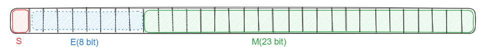 - E :E 是一个无符号数(unsigned int),所以 E 的取值范围是 0-255(8 bit)。但是在计数的时候 E 有可能出现负数(1.0 * 2^(-1)),所以规定在存入 E 的时候要加上中间数 127(Float)或 1023(Double)再存入