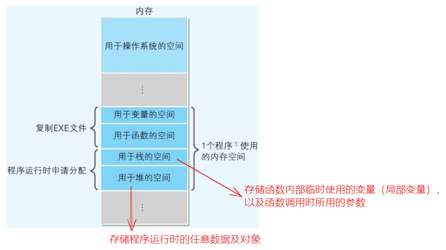 当程序加载到内存后,会额外生成两个组,那就是栈和堆,栈中的代码,是由编译器自动生成的,因此不需要程序员得参与。但是堆的内存空间,则要根据程序员编写的程序,来明确进行申请分配或释放