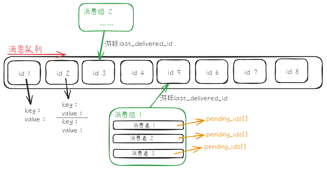 XGROUP CREATE 队列名 组名 游标创建消费者组xgroup createconsumer 队列名 组名 消费者名将消费者添加到某个消费组
